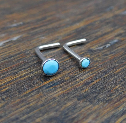 Genuine Turquoise Stone Nose Stud Bones, 18G Surgical Stainless Steel L Shape Nose Ring, 20G Low Profile Turquoise Nose Ring