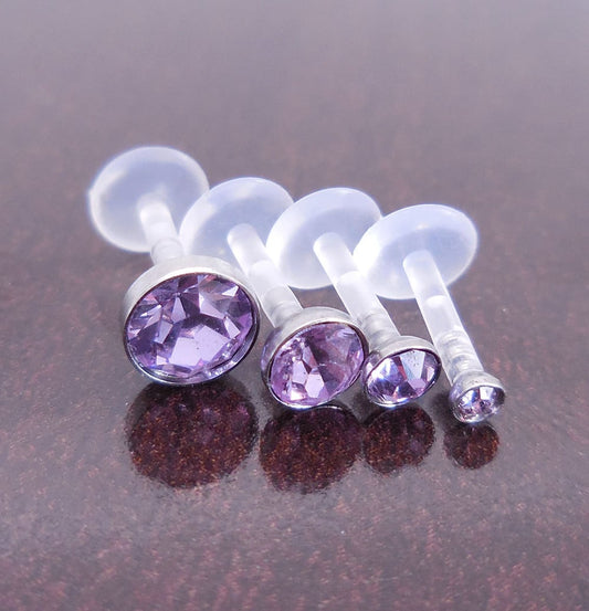 16G 6, 8 or 10mm Lavender CZ Helix BioFlex Earring Tragus Labret BioPlast Earrings Rings