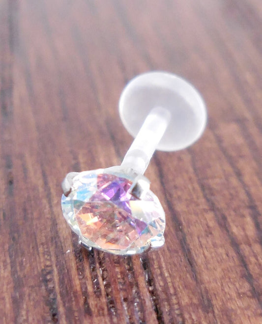 16G 6mm, 8mm Triple Forward Helix BioFlex BioPlast 2-5mm Prong Set Aurora Borealis CZ Earring Cartilage Tragus Monroe Lip Comfortable Rings