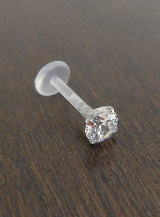 16G 6mm or 8mm Prong Set Clear CZ Triple Forward Helix BioFlex BioPlast Earring Cartilage Tragus Medusa Monroe Lip Rings