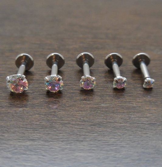 16G 6mm 1/4" Rainbow AB Crystal Triple Forward Internally Threaded Helix Earrings Cartilage Labret Stainless Steel TragusRegular price From $8.95Regular priceUnit price per-