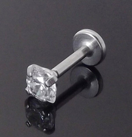 2mm 3mm 4mm Prong Set CZ 18G 1/4" Tragus Ear Triple Forward Helix Medusa Monroe Lip Piercing Stud Bar Earring Internally ThreadedRegular price From $8.95Regular priceUnit price per-