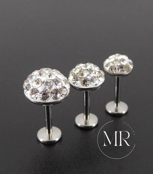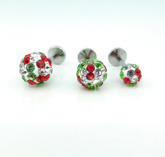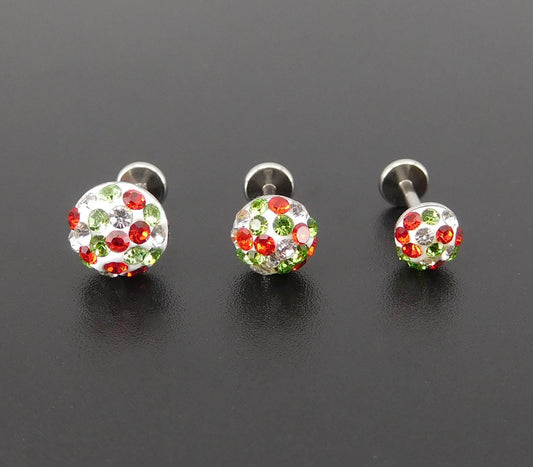 Christmas Crystal Ball Sphere Threadless Stud Earrings - 16G, 18G, 20G Holiday Cartilage Tragus Earrings