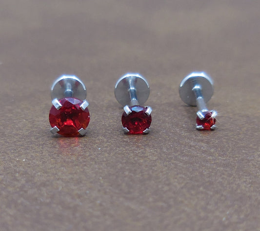 16G/18G/20G NEW Red CZ Threadless Flat Back Earrings - Push Pin Nose Stud - Flatback Studs - Labret Stud - Tragus Cartilage Stud Jewelry