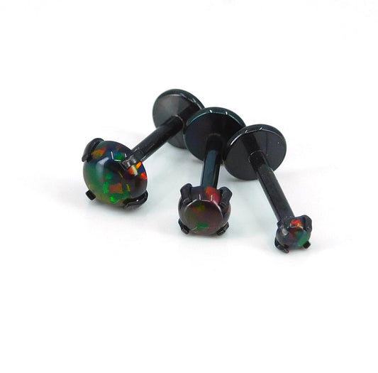18G Black Fire & Ice Opal Stud Earring - 16G Halloween Dark Opal Cartilage Earring - 20G Black PVD Threadless Tragus Earring Jewelry