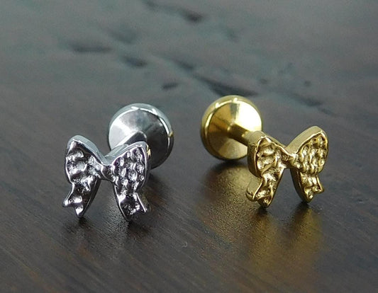 Small Petite Flat Bow Stud Earrings, Threadless Push Pin Gold Tone Nose Ring, 16G, 18G, 20G Rustic Earrings, Bow Shaped Cartilage EarringsRegular price From $11.95Regular priceUnit price per-