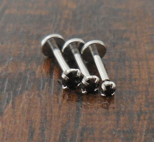 18G 2,2.5,3mm Tragus Black CZ Stone Stainless Threadless 6mm-8mm Push Pin Triple Cartilage Helix Nose Ring Labret Lip Earrings Prong SetRegular price From $8.95Regular priceUnit price per-