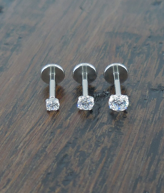 18g 2mm-4mm Solid Titanium Grade 23 Monroe Labret Clear Cubic Zirconia Tragus Cartilage Earrings Push Pin Threadless Triple Helix JewelryRegular price From $9.95Regular priceUnit price per-