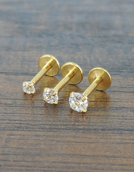 16g 2-4mm Tragus 6mm-8mm Threadless Push Pin Labret Nose Ring Cartilage Earrings Gold Tone Titanium Prong Set Clear CZ Stone Triple HelixRegular price $9.95Regular priceUnit price per