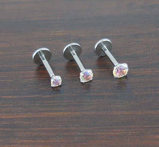 18g 2mm-4mm AB Cubic Zirconia Implant Solid Titanium Grade 23 Monroe Labret Tragus Cartilage Earrings Push Pin Threadless Triple HelixRegular price From $9.95Regular priceUnit price per-