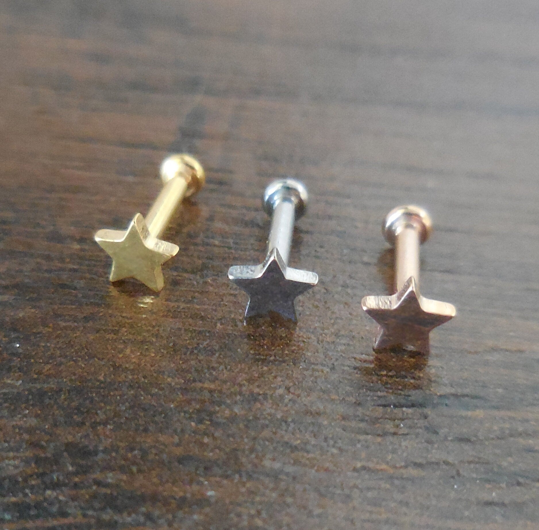 16G, 18G, 20G Cartilage Earring Threadless FlatBack Mini Star Labret Stud Tragus Helix Push Pin Conch Earrings Gold Tone Rose Stud