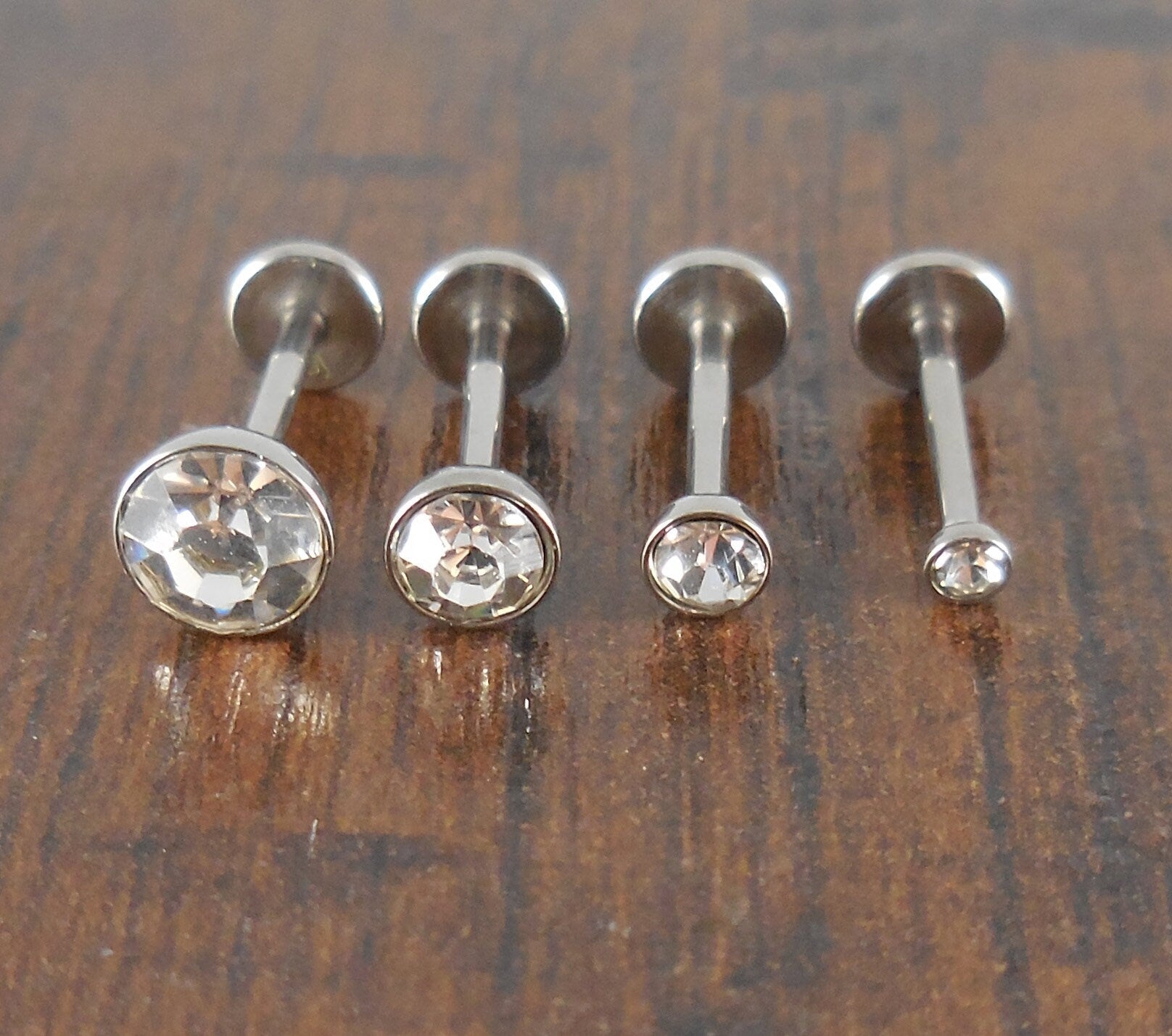 This listing is for one ring unless you choose to purchase all three or 4 options, the size is your choice. You can choose 2mm, 3mm 4mm 5mm or lot options. The clear cubic zirconia stones are very bright with sparkle that impresses. These are thread less, push pin style rings, they are easier to put in and do not run the chance of coming unscrewed. You will receive the size of your choice 2mm, 3mm, 4mm 5mm or all three or four stones. You order will be shipped in a jewelry box like the one pictured above.