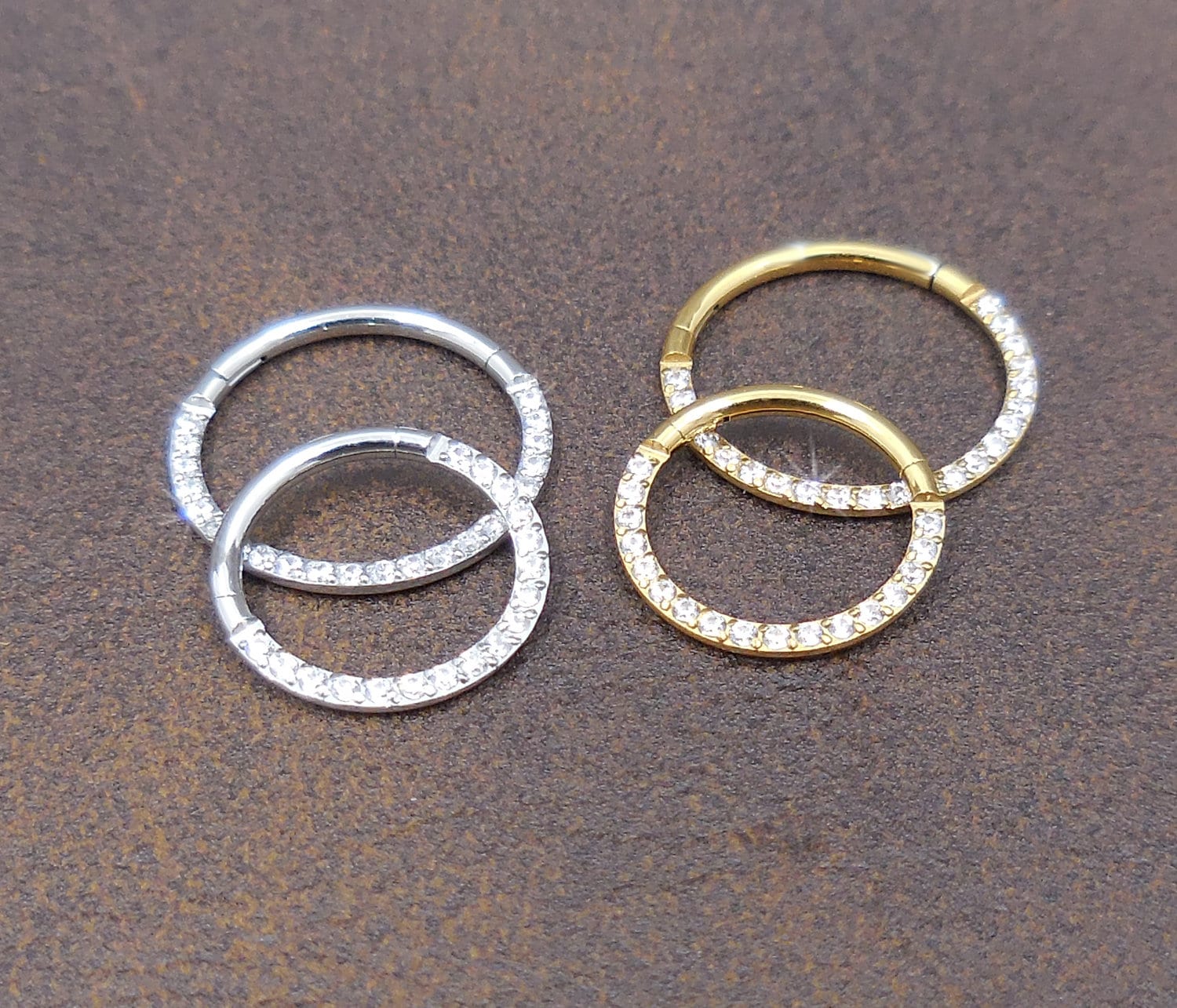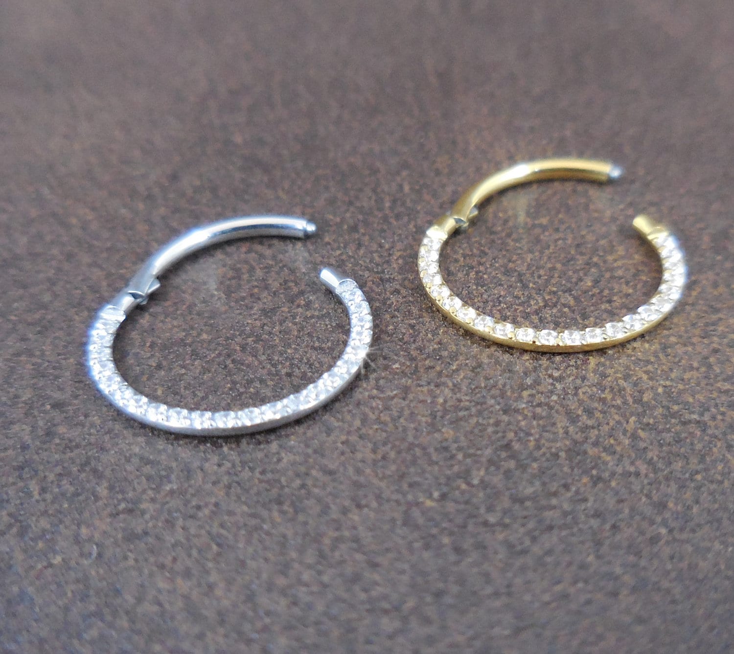 Some of out most popular nose rings. Multiple finishes, styles and stone sizes to choose from.