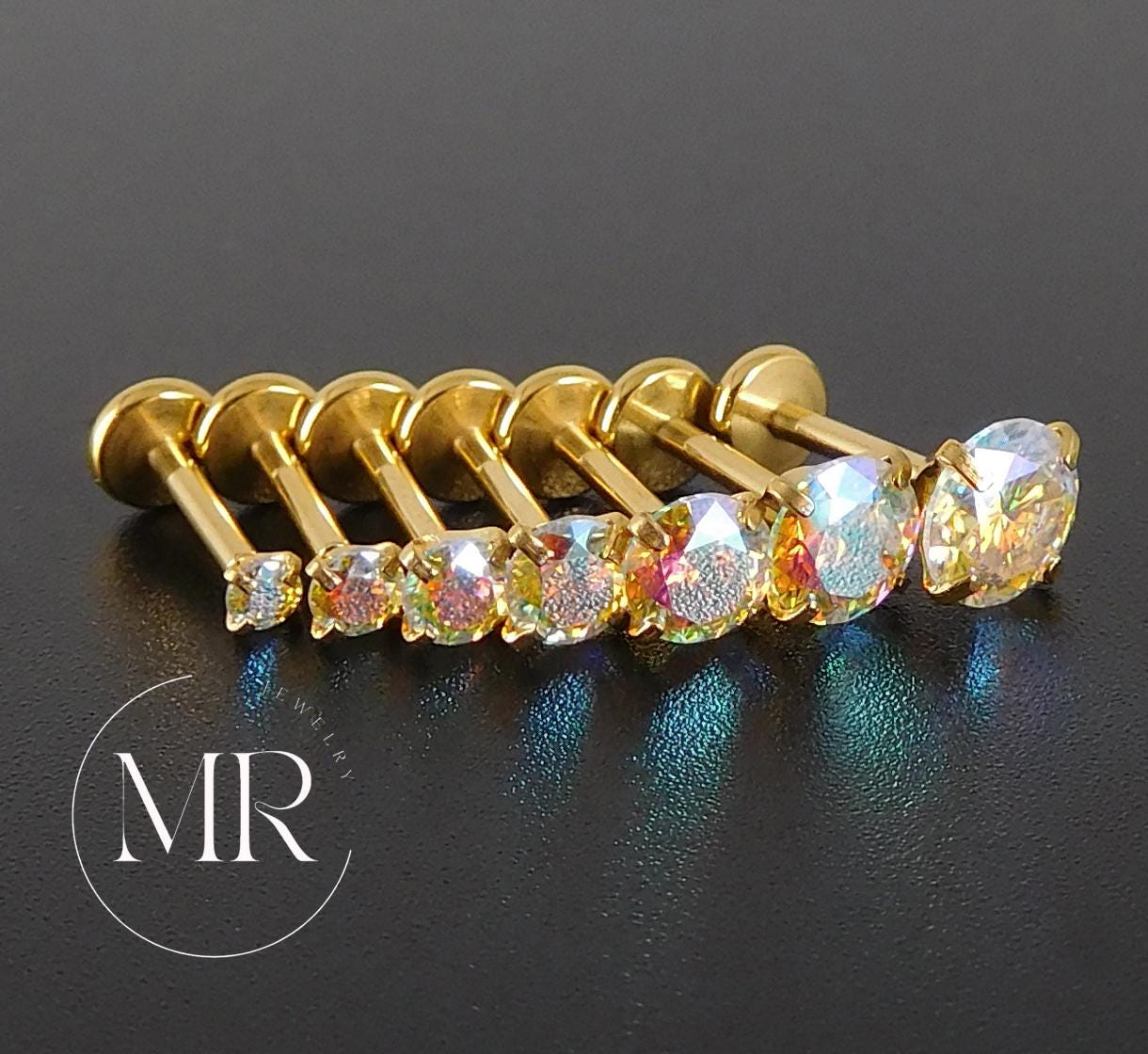 This listing is for one moissanite threadless stud earring, available in 16G, 18G, and 20G. Designed for a secure and comfortable fit, these studs are perfect for cartilage, helix, tragus, and other piercings.