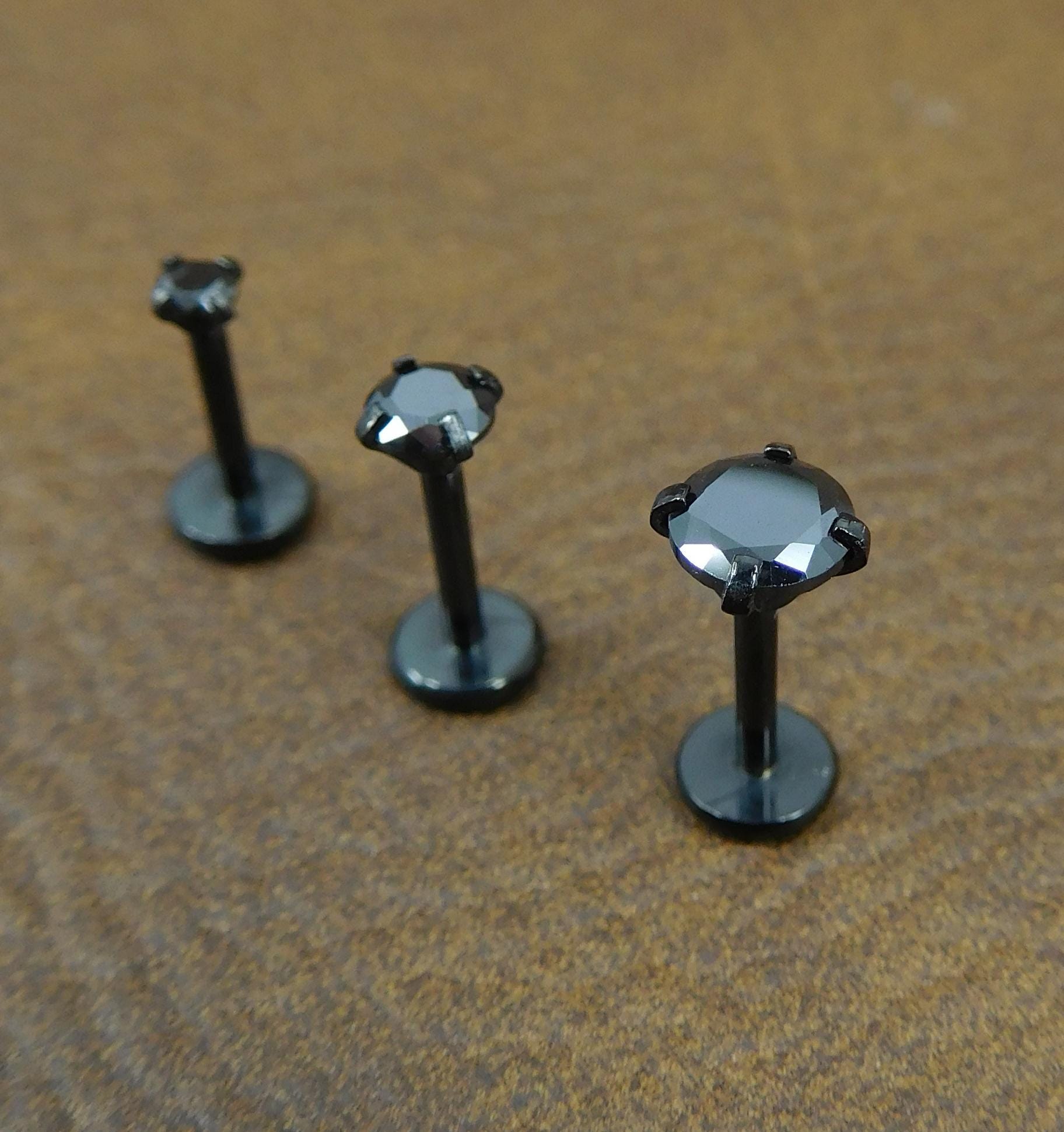 This listing is for one ring. You can choose 2mm, 3mm or 4mm or lot options. These are very unique dark black crystals. These provide a great look for that Halloween enthusiast. They are set in the prong by hand for accuracy. These are unique in that they do not have threads. The stone is held in place by the tension created with a slight bend in the pin. For snug fit bend the pin a little more, for a loose fit you can straighten the pin.