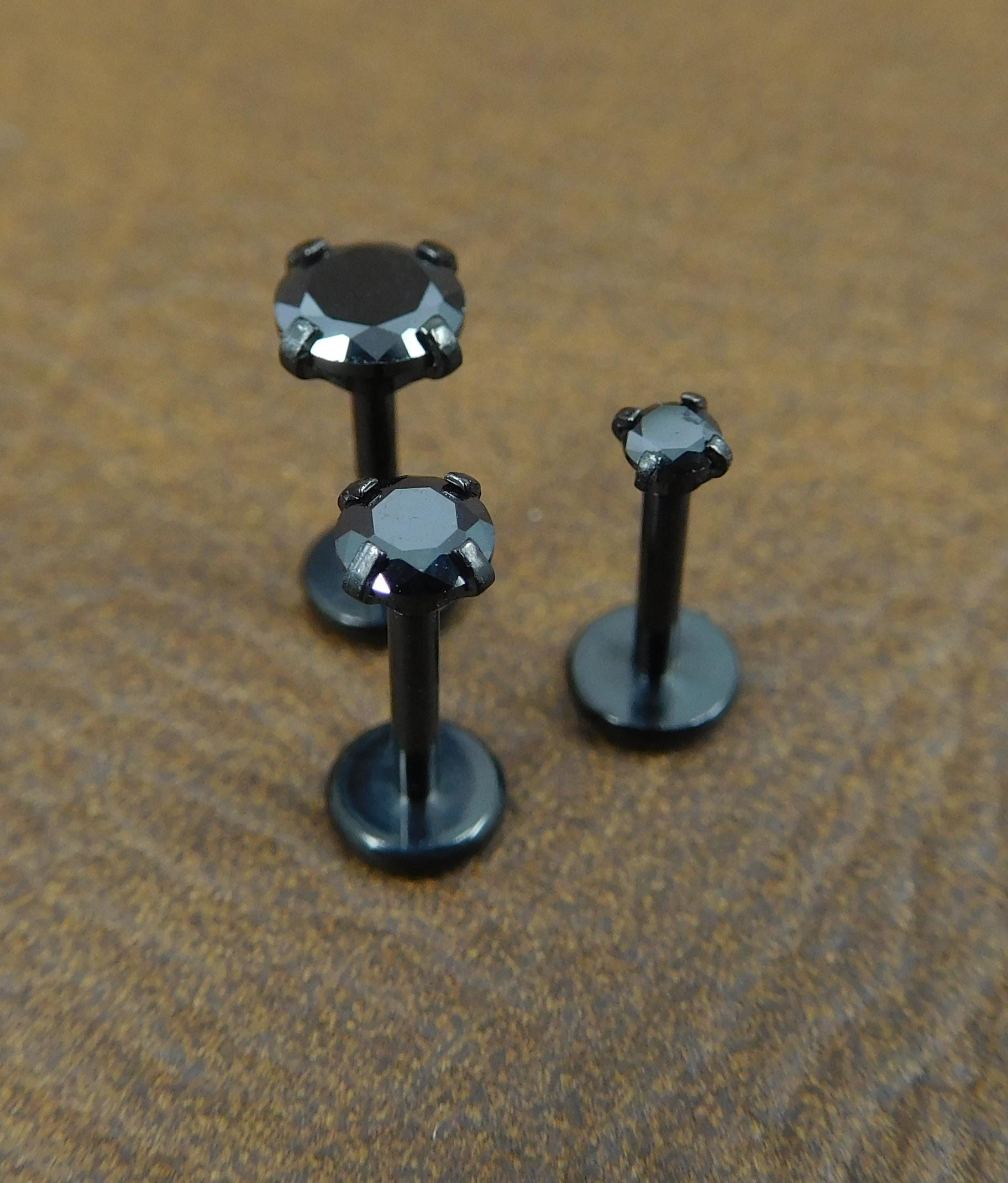 Black Crystal Prong Set Stud, Surgical Steel Flat Back, 16G 18G 20G