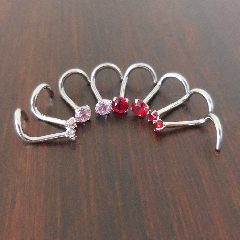 Pair 2mm or 3mm Prong Set Screws Nose Rings Many Colors Stainless Steel Rainbow Prism AB Crystal CZ 20G or 18G