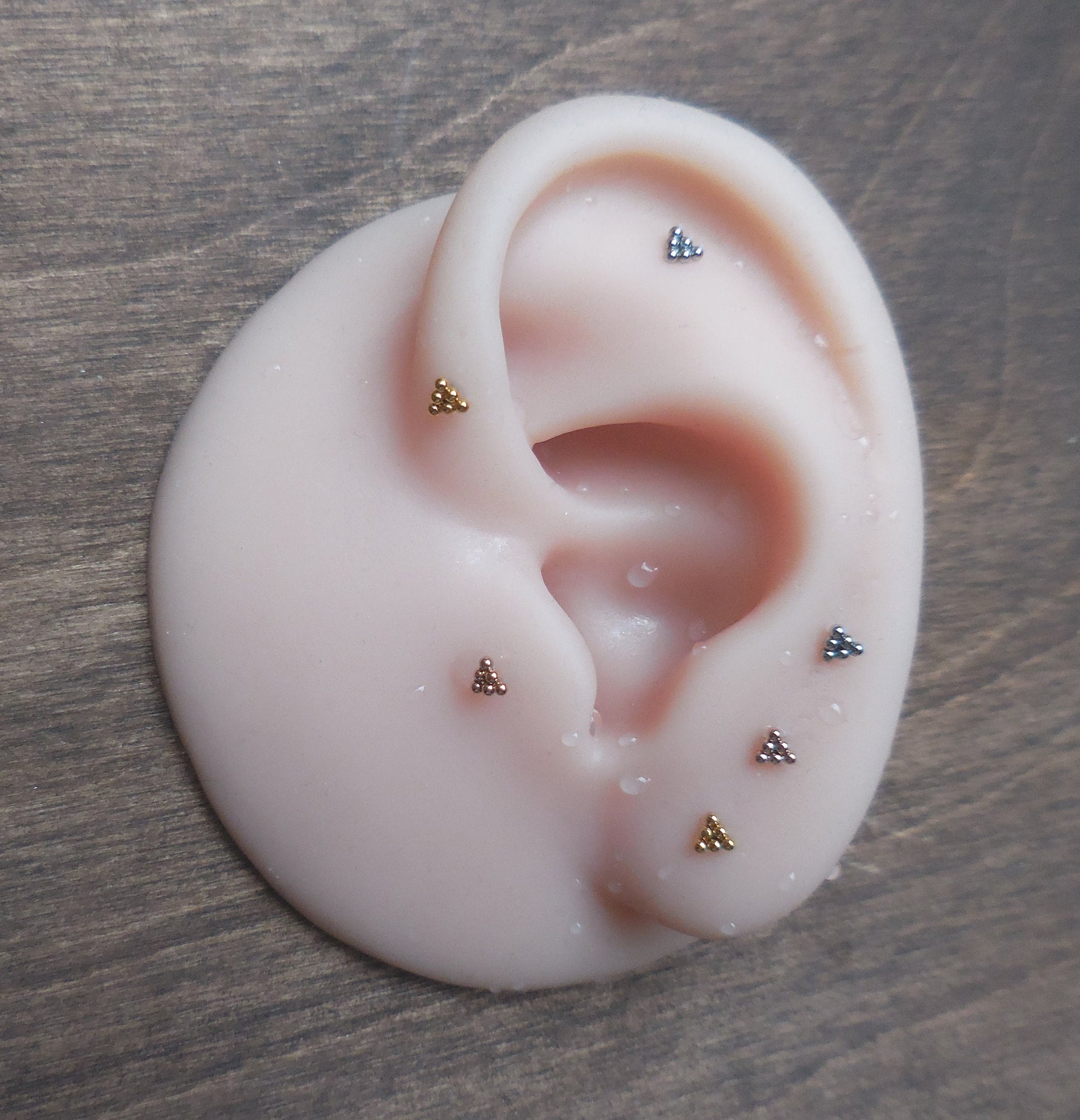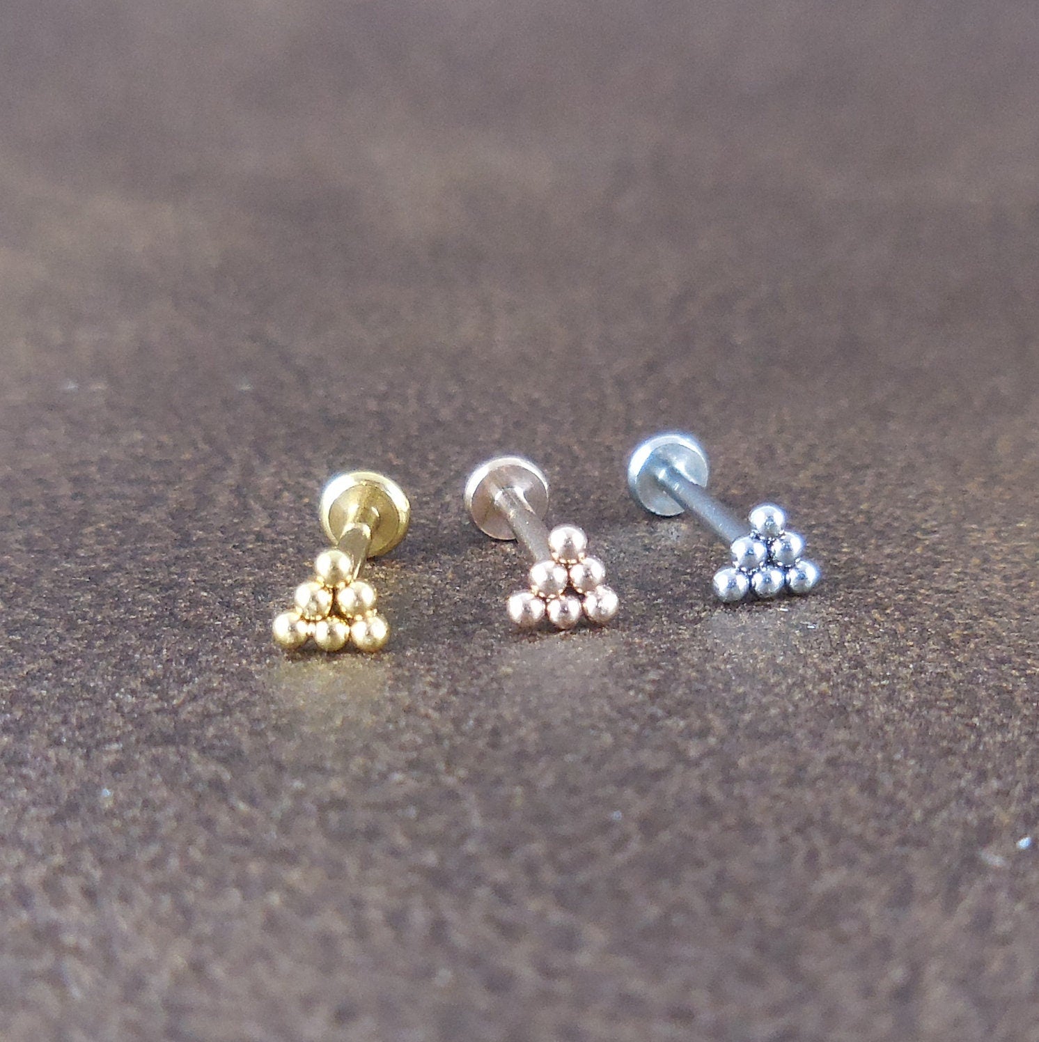 Small Triangle Cluster Labret Stud 16G, 18G, 20G Flatback Threadless Tragus Helix Push Pin Earrings Cartilage Flat Back Gold Tone Nose Stud