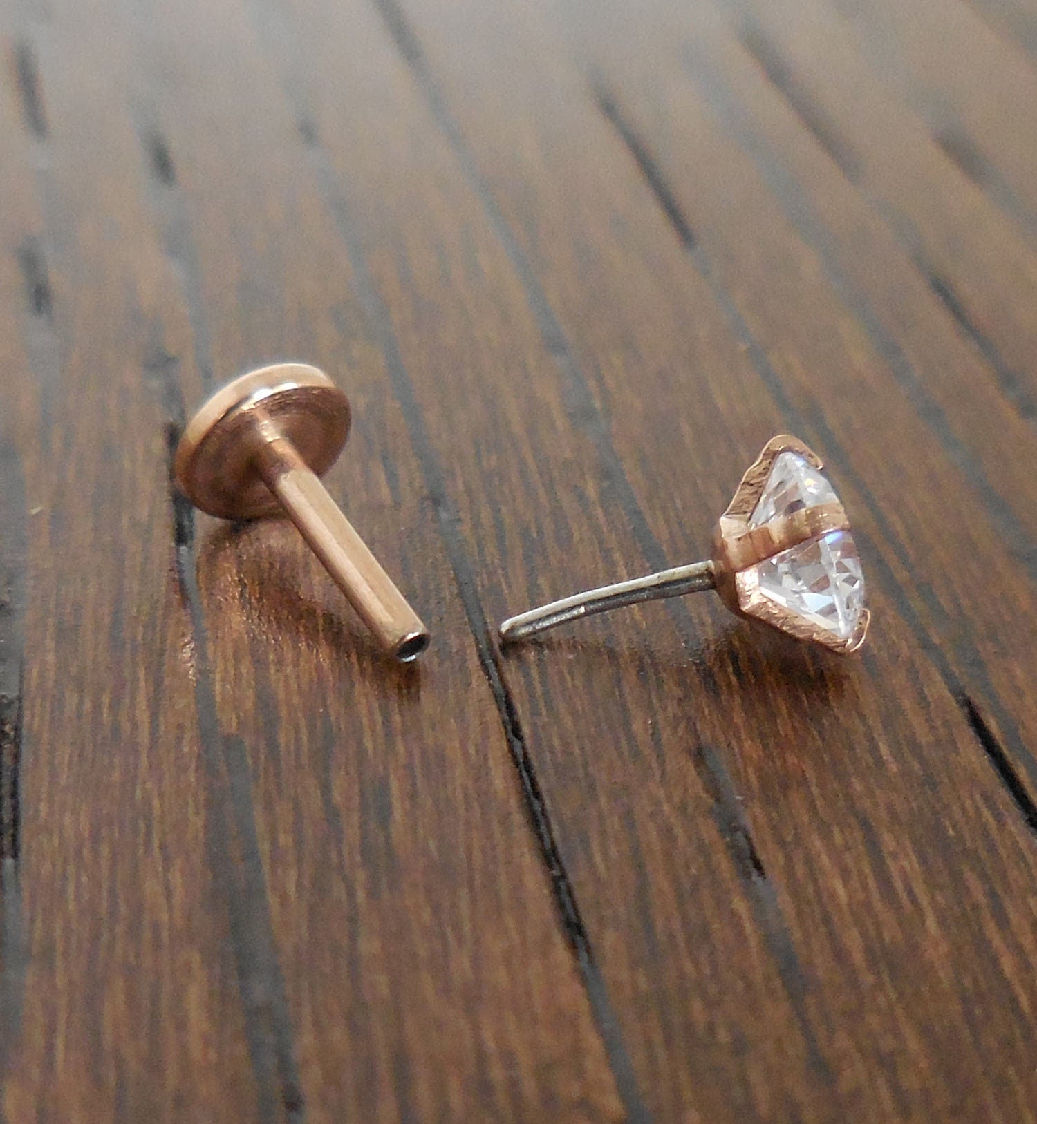 Tragus Threadless Push Pin 6mm-8mm Nose Ring 18g Prong Set Clear CZ 2-4mm Cartilage Earrings Rose Gold Tone Labret Triple Forward Helix